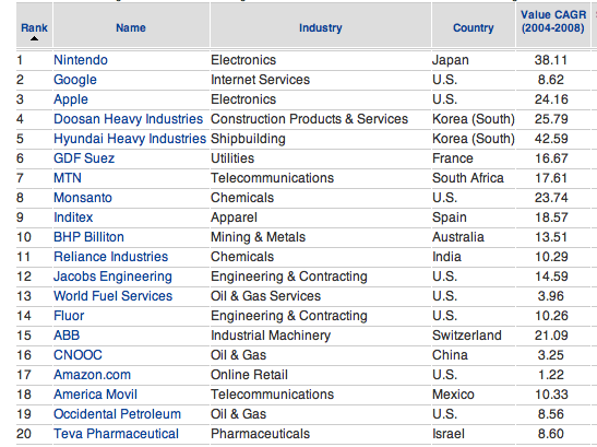 ビジネスウィークが報じたA.T. Kearneyの調査によれば任天堂が1位になった。